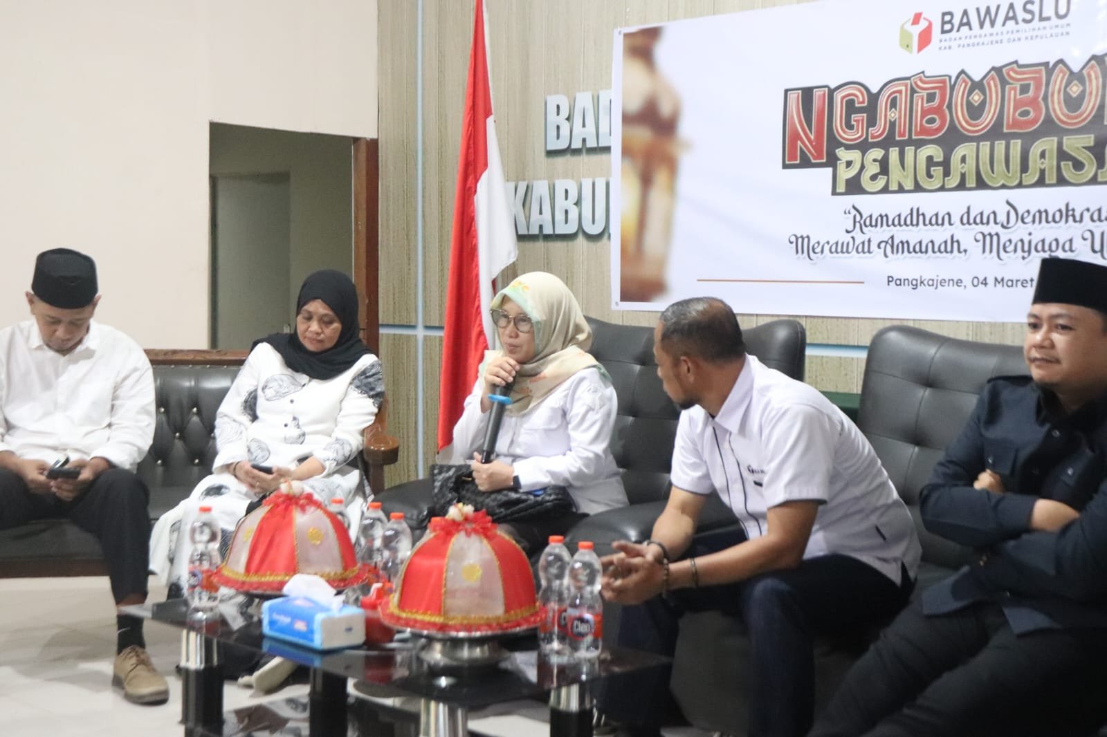 Hal tersebut diutarakan Ketua Bawaslu Provinsi Sulawesi Selatan Mardiana Rusli saat menghadiri Ngabuburit Pengawasan yang digelar Bawaslu Kabupaten Pangkajene dan Kepulauan (Pangkep) di Ruang Rapat Kantor Bawaslu Kabupaten Pangkep, Jl. H. Moh. Arsyad B, Pangkajene, Rabu (4/3/2026).