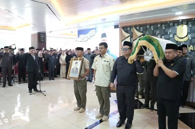 Jenazah almarhum Ruslan Mahmud, anggota DPRD Kota Makassar periode 2024-2029, dilepas dalam prosesi penuh haru di halaman Kantor DPRD Kota Makassar.