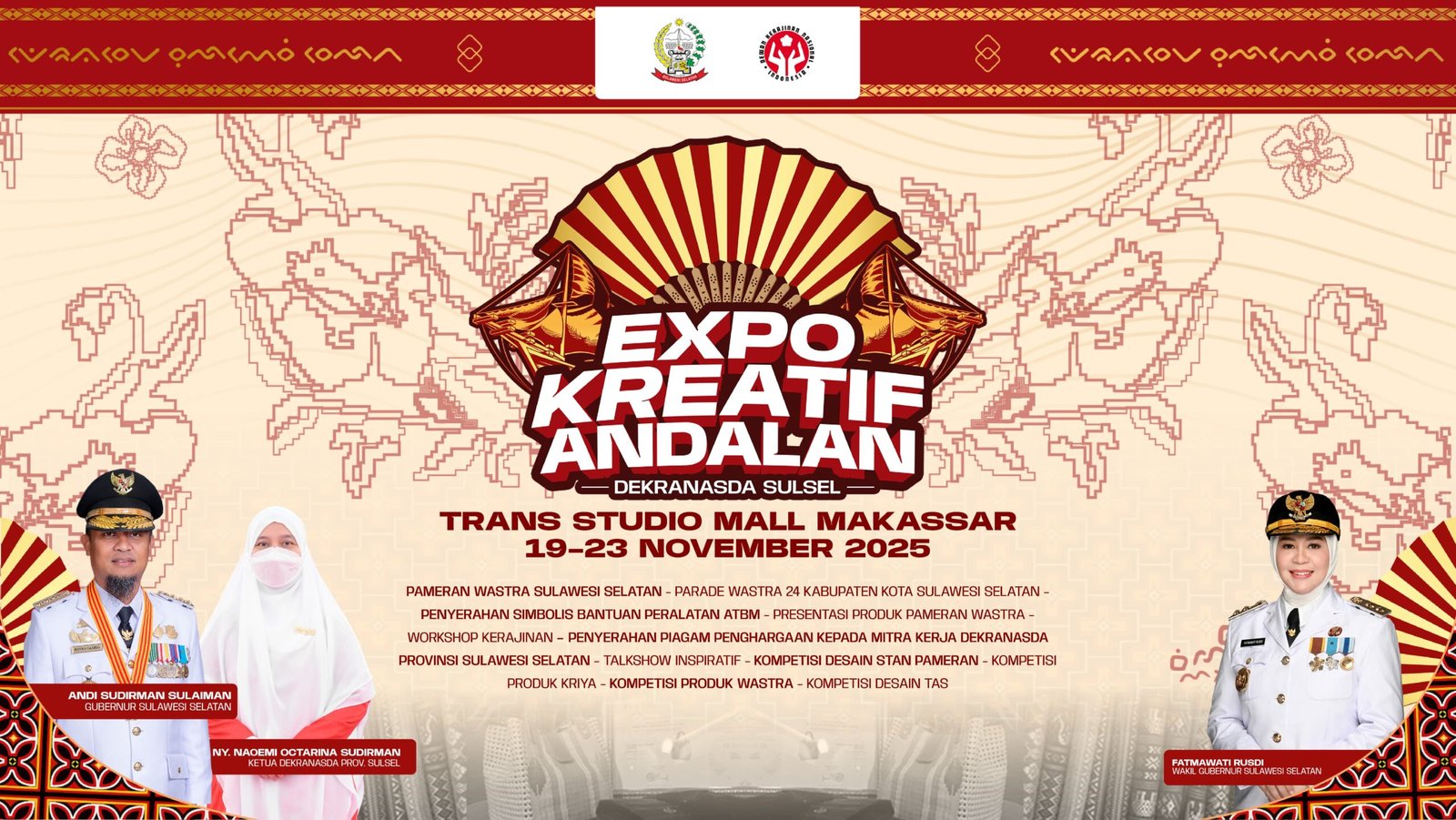 Expo Kreatif Andalan ini sebagai upaya memperkuat ekosistem usaha mikro, kecil, dan menengah (UMKM) serta pengrajin lokal agar lebih adaptif terhadap tren dan kebutuhan pasar global. Melalui pameran ini, akan menampilkan berbagai produk unggulan dari 24 kabupaten/kota di Sulawesi Selatan.