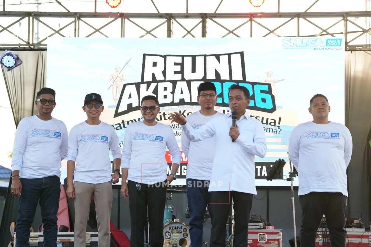 RUANGAKSELERASI.ID, SIDRAP — Bupati Sidenreng Rappang (Sidrap), Syaharuddin Alrif, menghadiri acara reuni SMA 467 angkatan 2003 di Pelataran Monumen Ganggawa, Kelurahan Pangkajene, Kecamatan Maritengngae, Ahad sore (1/3/2026).